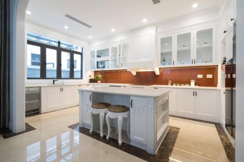 Morehome đã thực hiện hoàn thiện trọn gói nội thất phòng bếp cho biệt thự Vinhomes Imperia tại Hải Phòng. Hình ảnh thi công nội thất phòng bếp tân cổ điển trên đây là một trong nhiều sản phẩm thi công nội thất của Morehome tại biệt thự Vinhomes Imperia Hải Phòng.